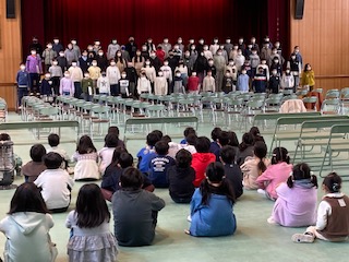 卒業式まであと数日となりました。6年生のがんばっている姿を2年生が見学しました。6年生への憧れと尊敬のまなざしで、見ていました。