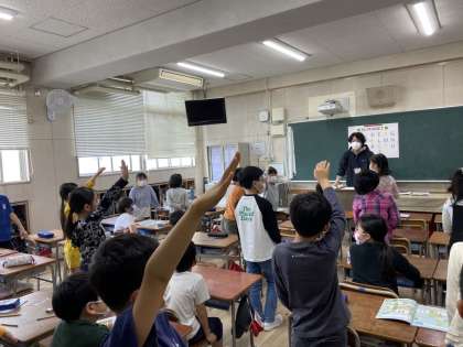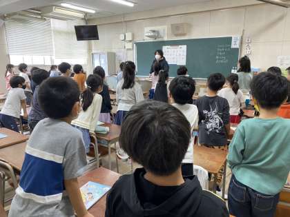 4年生なって初めての外国語活動です。今年から毎週外国語専科の先生に教えてもらいます。