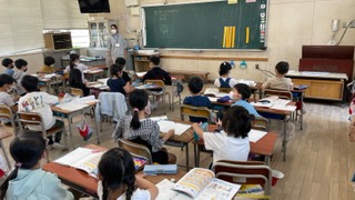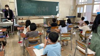 2年生の算数では、足し算の筆算から学習します。ブロックで計算の仕方を考えた後で位をそろえて書き、位ごとに計算する練習をしました。