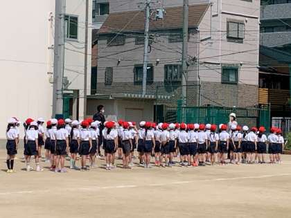 また、整列の練習の練習もしました。遠足に行くためにも上手に並べるようにならなければなりません(o^^o)入学して、もうすぐ二週間、しっかりがんばっています(^_^*)
