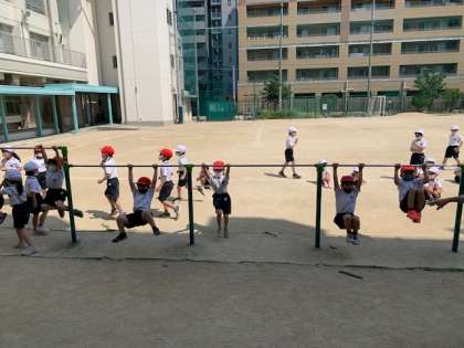 運動場で、元気いっぱい走ったり、鉄棒をしたりしました(^^)