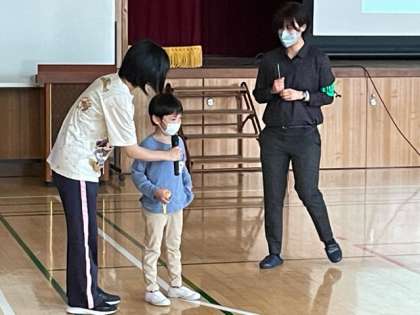 5つの約束、見知らぬ人への対応の仕方など、クイズや実演でわかりやすく教えていただきました。
