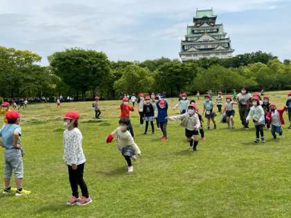 お昼ごはんの前に西の丸庭園で遊んでいます。