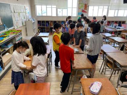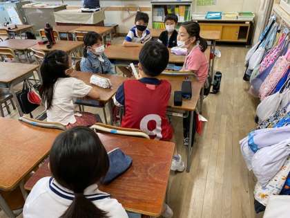 6月22日(水)に実施する「わくわくランド」の準備が始まります。今日は、縦割り班と言って1年生から6年生までの各学年の子で編成した班で、自分たちの班で行うお店について話し合いました。