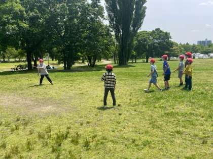 おにごっこにフリスビー、お弁当を食べた後、みんな楽しく過ごしています。