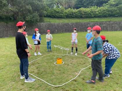弁当を食べ終わり、午後のプログラムアドベンチャーラリーにチャレンジしています。