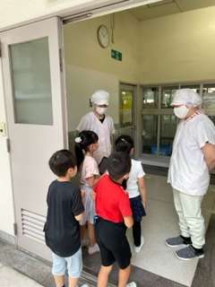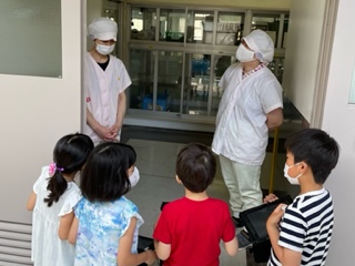 本日は、給食調理員さんの仕事のことや、仕事場を見せてもらい、沢山の事を教えて頂きました。
