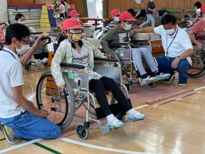 車いすの扱い方、乗り降りの方法を教えていただいた後、自走体験をしました。