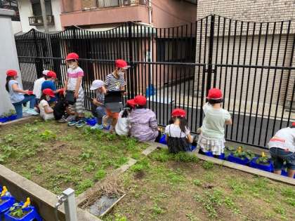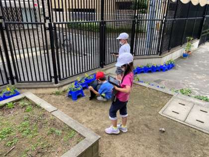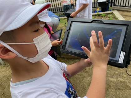 1年生がタブレットを使って、育てているアサガオの記録をしていました(^^)