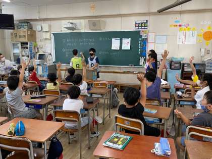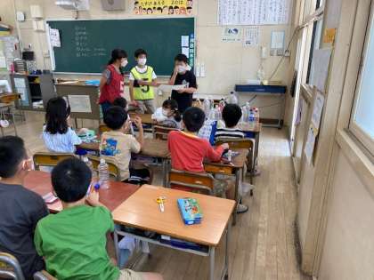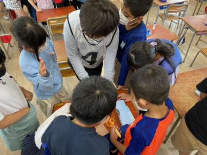 2週間後の「わくわくランド」を前に、縦割り班でお店の準備をしました。