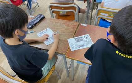 い組は「こん虫ゼンタングル」と題して、同じ模様を沢山描いてできる模様を楽しんでいました。