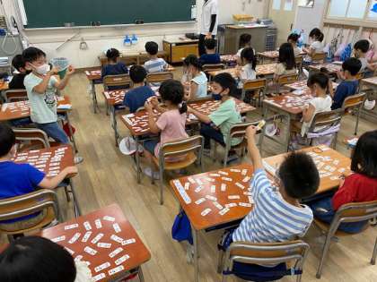 計算カードを使って足し算・引き算の練習をしていました。