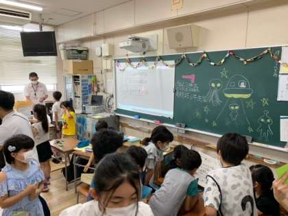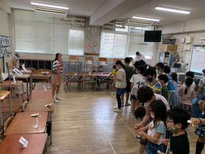 8班(4-い)『宇宙を救え!あなたがヒーローシューティングスナイパー』割り箸鉄砲で宇宙人の絵がかいてある的をねらうお店です!