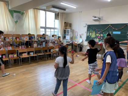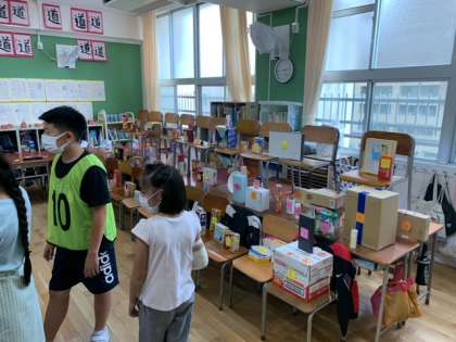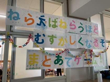 10班(5-い)『ねらえばねらうほどむずかしくなるぞまとあてゲーム』箱に点数が書いてある的を、紅白玉、ピンポン玉、シャトルを使って当てるお店です^ ^