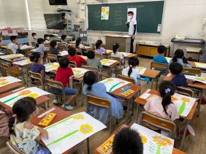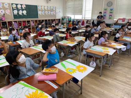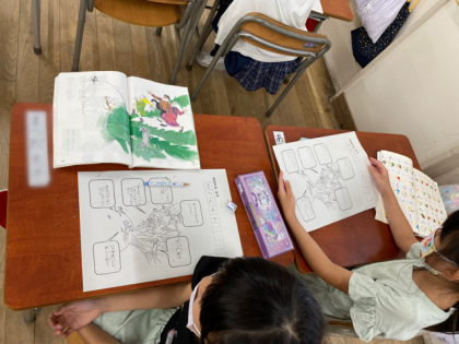 い組は「大きなかぶ」を読んでワークシートをもとに問いに答えていました。