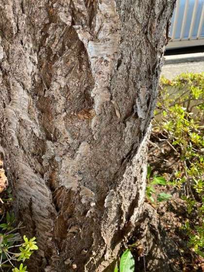 登校時間の出来事。「校長先生、まだ脱皮してない幼虫!」と言ってセミの幼虫を持ってきてくれました。男の子はそっと学校前の桜の木に付けてあげていました。
