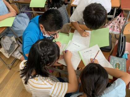 林間学習まであと少し。それと同時に1学期もあと少し。今日は、林間の活動班で、班のめあてや飯盒炊爨の役割をきめました。その後、キャリアパスポートで林間でがんばりたいことや、1学期の振り返りをしました。