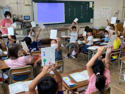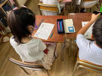 い組は、暑中見舞ハガキの書き方を学習していました。「こんなハガキを書いたよ」と見せてくれました(^^)