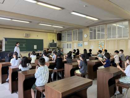 2年は組1学期最後の音楽は、音楽室で行いました。