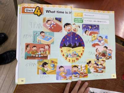 今日の外国語活動は、○○した時間をたずねることにチャレンジしました。