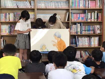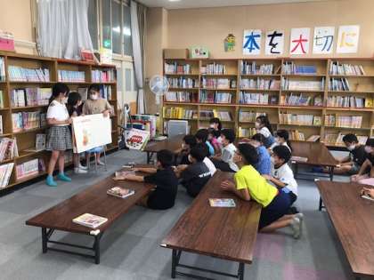 2学期、新しい図書係がクラス全体に絵本の読み聞かせをしました。