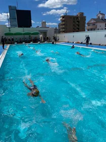 小学校生活のプール水泳も今日を含めて残すところ3回。その感触を味わうように、25m、50mと泳いでいました。