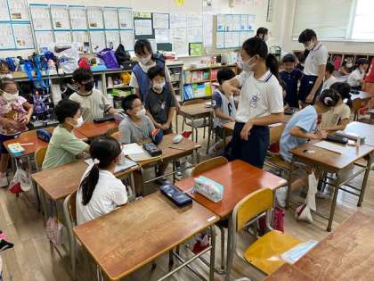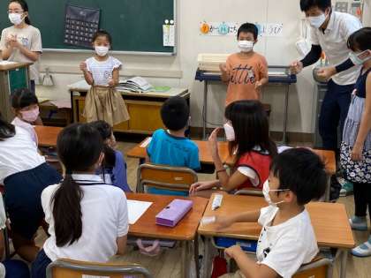 高学年のお兄さんお姉さんが出題し、それを班で当てます。簡単な問題もあれば、なかなか伝わりにくいものもありましたが、朝から笑顔が弾けていました(^^)