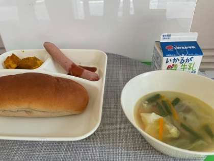 ウインナーのケチャップソース、スープ、焼きかぼちゃ