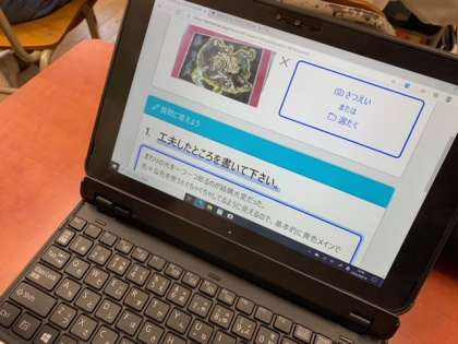 作品展の版画が出来上がってきたので、みんなで作品鑑賞会をしました。今回から、図工教材クラフテリオの方に来ていただき、「レポクラフト」というアプリを使い作品レポートと作品の写真を添付し提出しました。みんなの提出した作品は、個人でタブレットで見ることができ、コメントを入力したりすることができます。みんな、友達の作品に「いいね」を押したりコメントをいれていました!