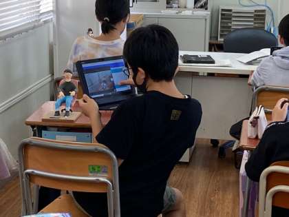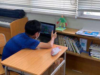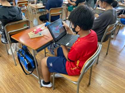 6年生は、特に作品のどこを見てほしいか、を意識し焦点を絞った写真を撮っていました。写真を撮った後は、写真を説明する文を考えて入力していました。