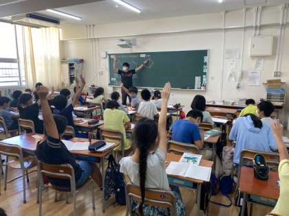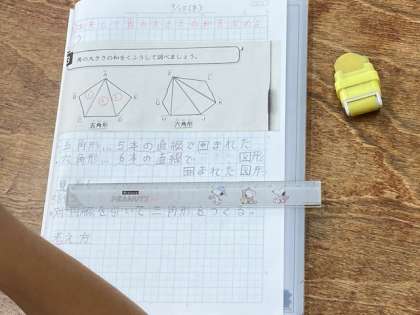 5年生は、三角形の内角の和を使って、多角形の内角の和を求めていました。