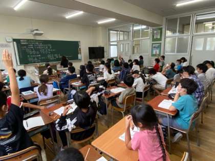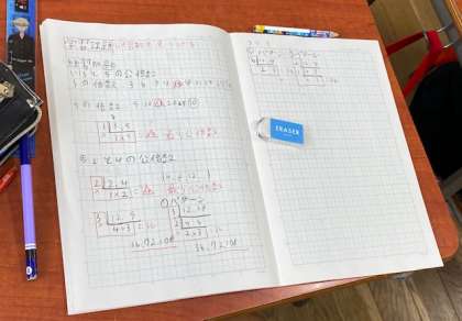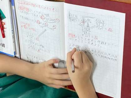 5年生の算数では、2つの数の最小公倍数の求め方を学んでいました。求め方が分かってきたのでしょう、授業の終わりには、3つの数の最小公倍数を求めることにもチャレンジしていました(^^)