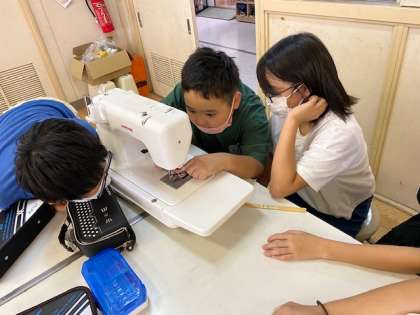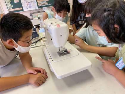 5年ではミシンの使い方を学んでいます。前回までに上糸の通し方を、今日は下糸の通し方を学習しました。