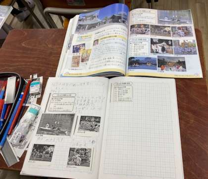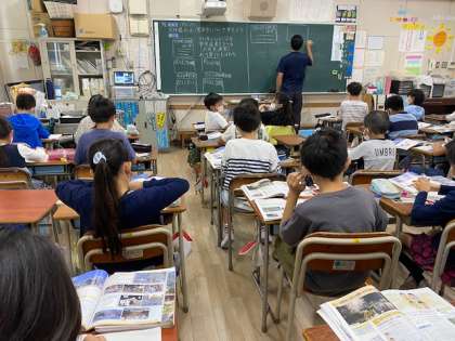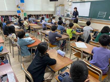 ろ組は、先週末にあったことをもとに日記を書き、担任の先生が紹介していました。心が動かされたことが書かれていて、友だちから拍手が送られていました。