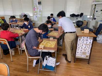 本校にゲストティーチャーにお越しいただいているプロ棋士の方が「普段の研究に使ってるものですが」と将棋の駒をお持ちいただき、将棋クラブの子どもたちに見せてくださいました。