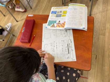 実際書いてみよう!ということで物差しを使ったりプリントの向きを変えたりしていました(^^)