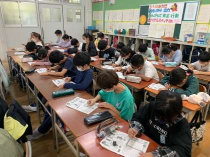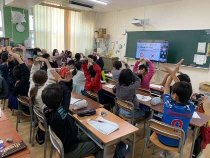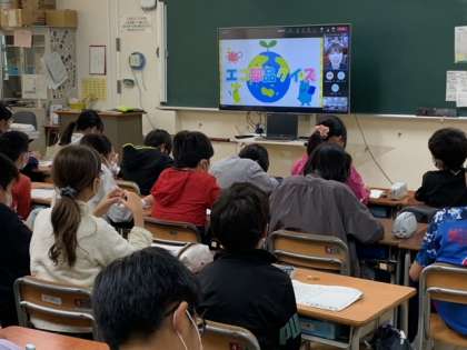 5時間目の三菱自動車オンライン社会見学『生産編』に続き、6時間目は『環境編』でした。三菱自動車が取り組んでいる「人と地球環境にやさしい車づくり」についてクイズをして楽しく学習できました。車部品リサイクル率、生産の中ででたゴミのリサイクル率ともに、99%でみんな驚いていました。