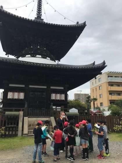 3年生の校区探検では、昨日の四天王寺に引き続き、今日は愛染堂にお邪魔しております。