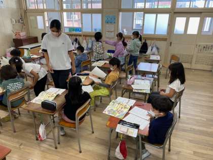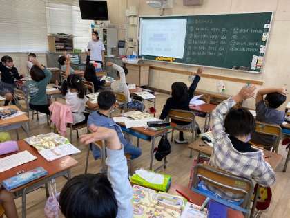 2年生の算数では、ある時は一人で、ある時は隣近所の友だちと、新しい計算について考えていました。