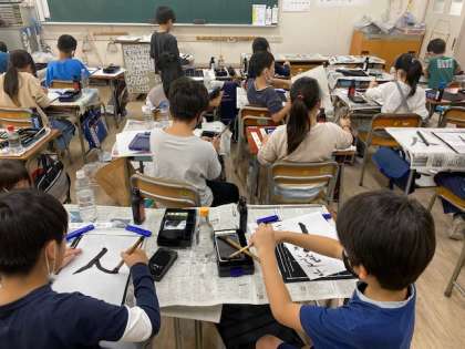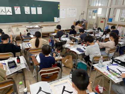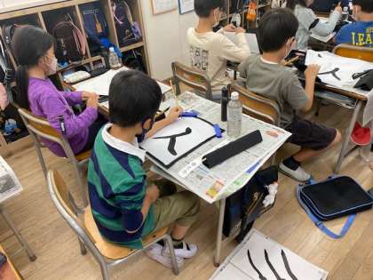 3年生は「人」という字を筆で書いていました。習字が好きな子が多いのか、集中して書いていました(^^)