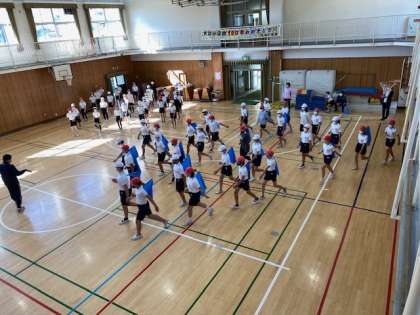 5年生は前半、フラッグを振っていましたが、ブンブンと風を切る音は結構迫力あるものでした。