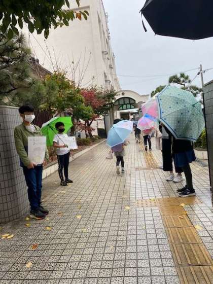 11/1(火) 登校の様子 公開日 2022/11/01 更新日 2022/11/01 お知らせ おはようございます。 今日は久しぶりの雨です。 雨にも負けず、あいさつ運動、頑張っています。 いいね(0)