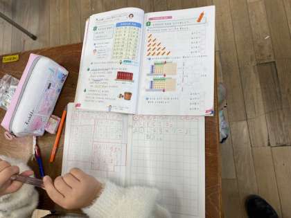 1つ分の数×いくつ分=ぜんぶの数という考え方に当てはめながら式を立てて解いていました。