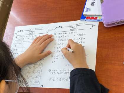 今日は、5の段の練習プリントにチャレンジしていました。