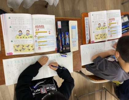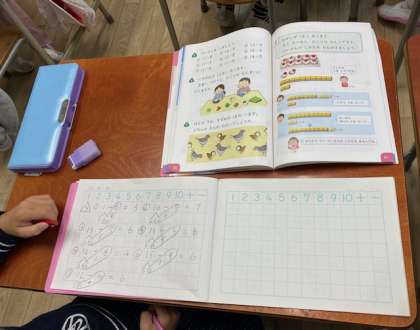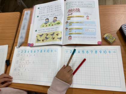 1年生の算数では、くり下がりのあるひき算に挑戦していました。