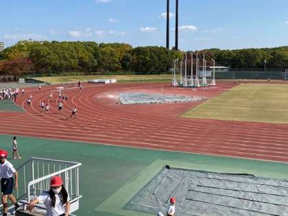 後半はリレーです。100メートルずつを4人が走り、バトンをつなぎます。走らない子も応援を頑張っていました。