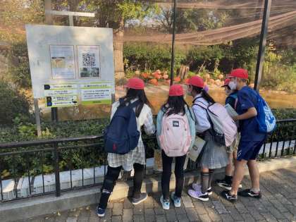 今日は、天王寺区体験学習交流会として天王寺小、聖和小の5年生との交流を兼ねて、天王寺動物園に来ています。動物園の歴史やクイズラリーなど、色々発見していました。