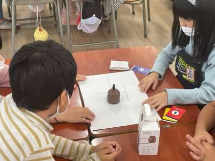プログラミングカーに指示カードを読み取らせて動かしました。