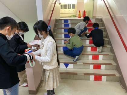 運営委員会は、階段の右側通行を促す表示の設置をしていました。