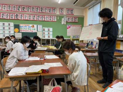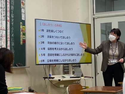先ほどの5年生の話合い活動をもとに、授業を振り返り、意見交流しました。